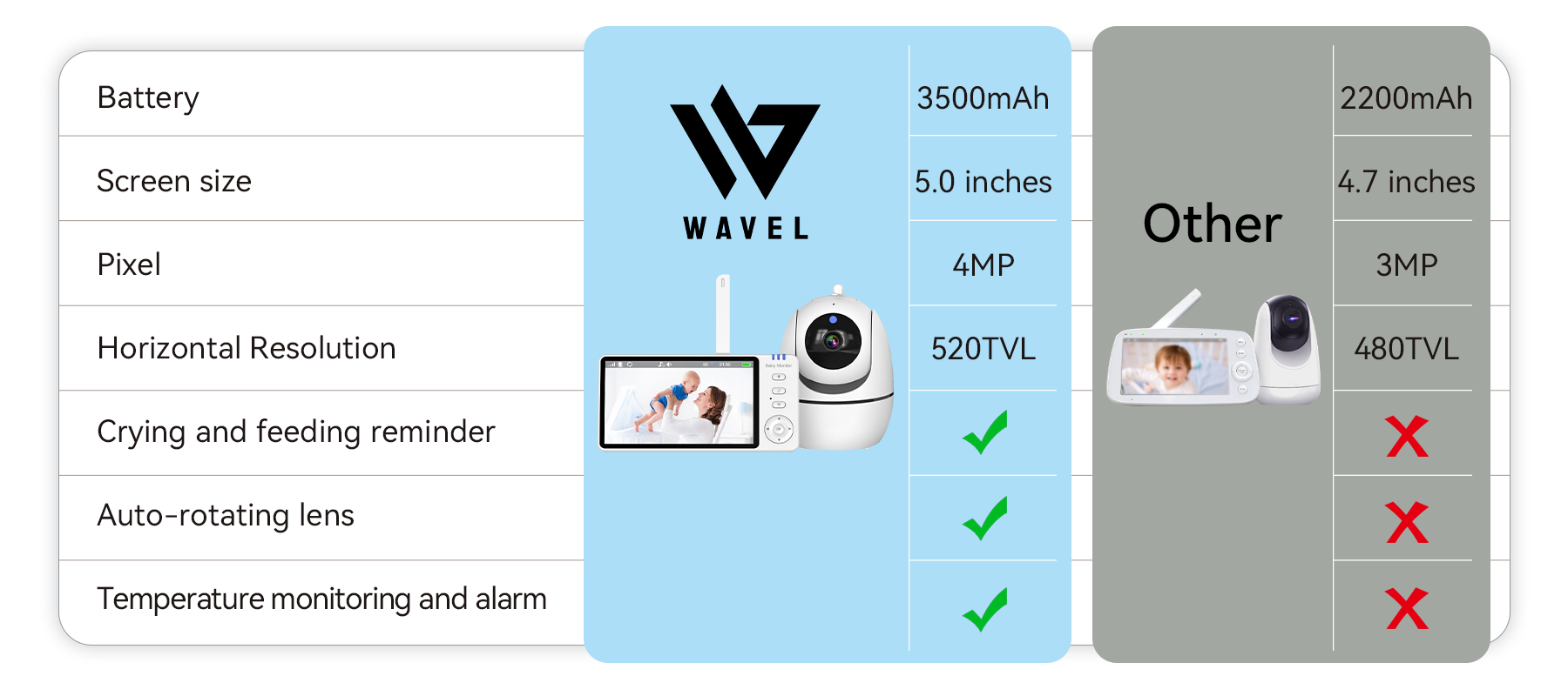 Wavel Baby Monitor combines smart monitoring, seamless interaction, and thoughtful features to give you peace of mind, wherever you are.